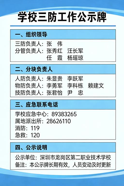 学校三防工作公示牌